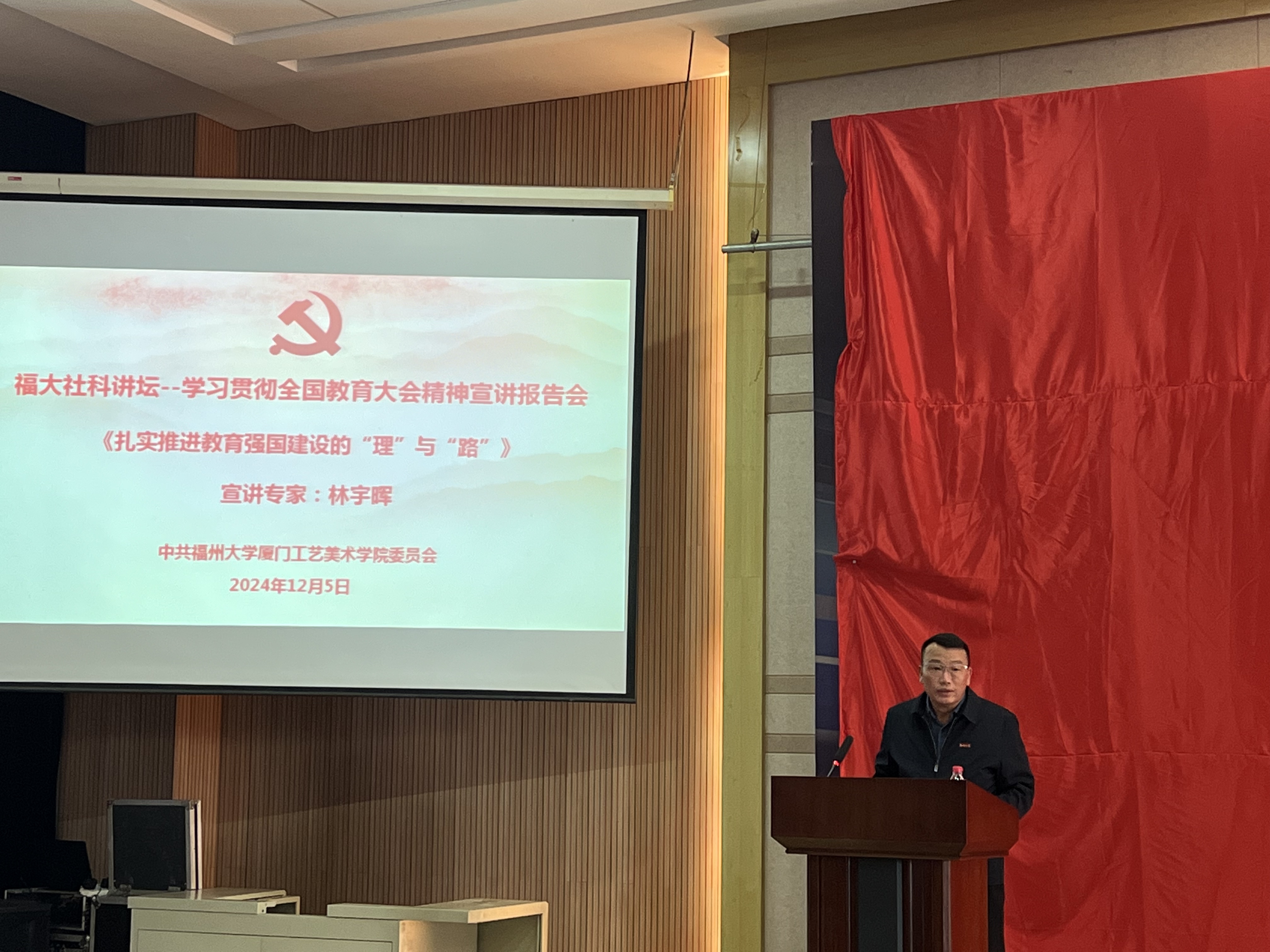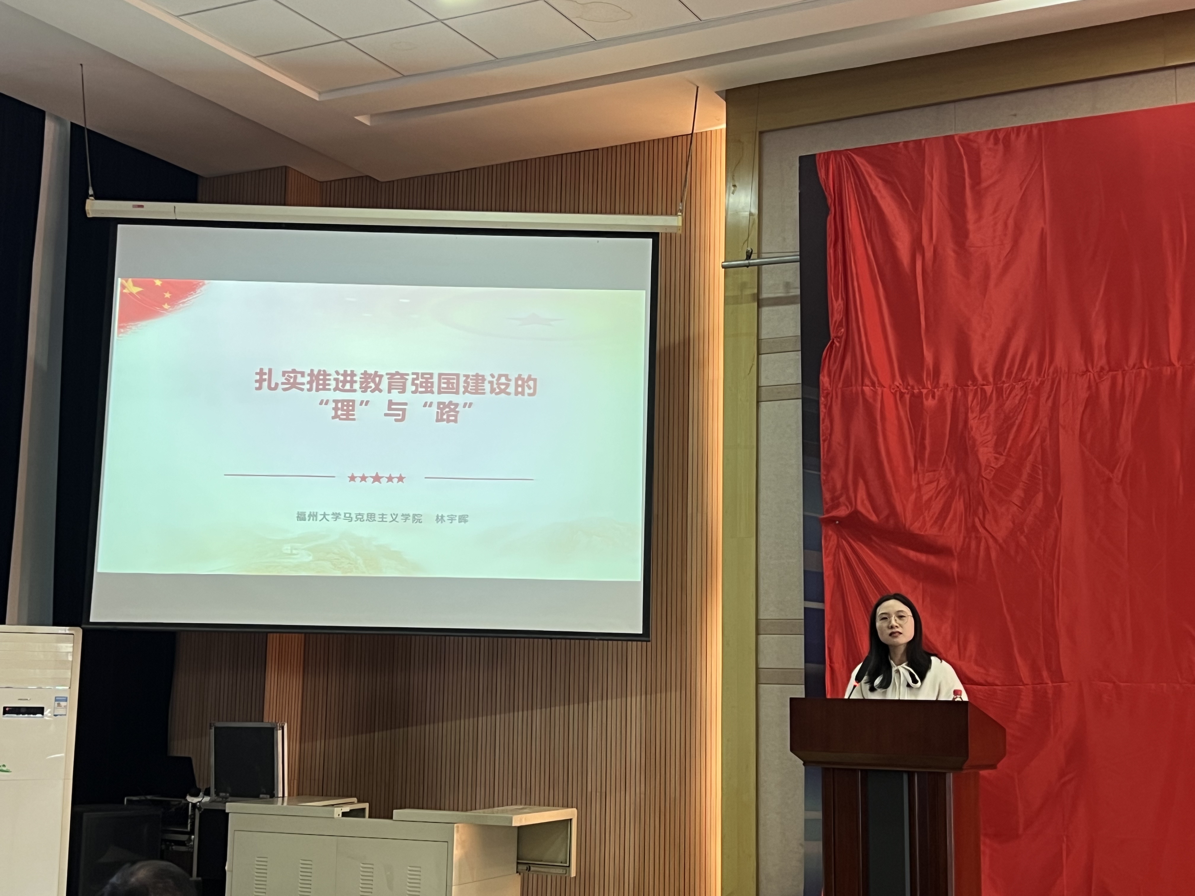 马克思主义学院教师林宇晖老师来院作题为《扎实推进教育强国建设的“理”与“路”》的宣讲报告。学院党委林金强副书记主持宣讲会,全院教职工和部分学生参加了报告会。