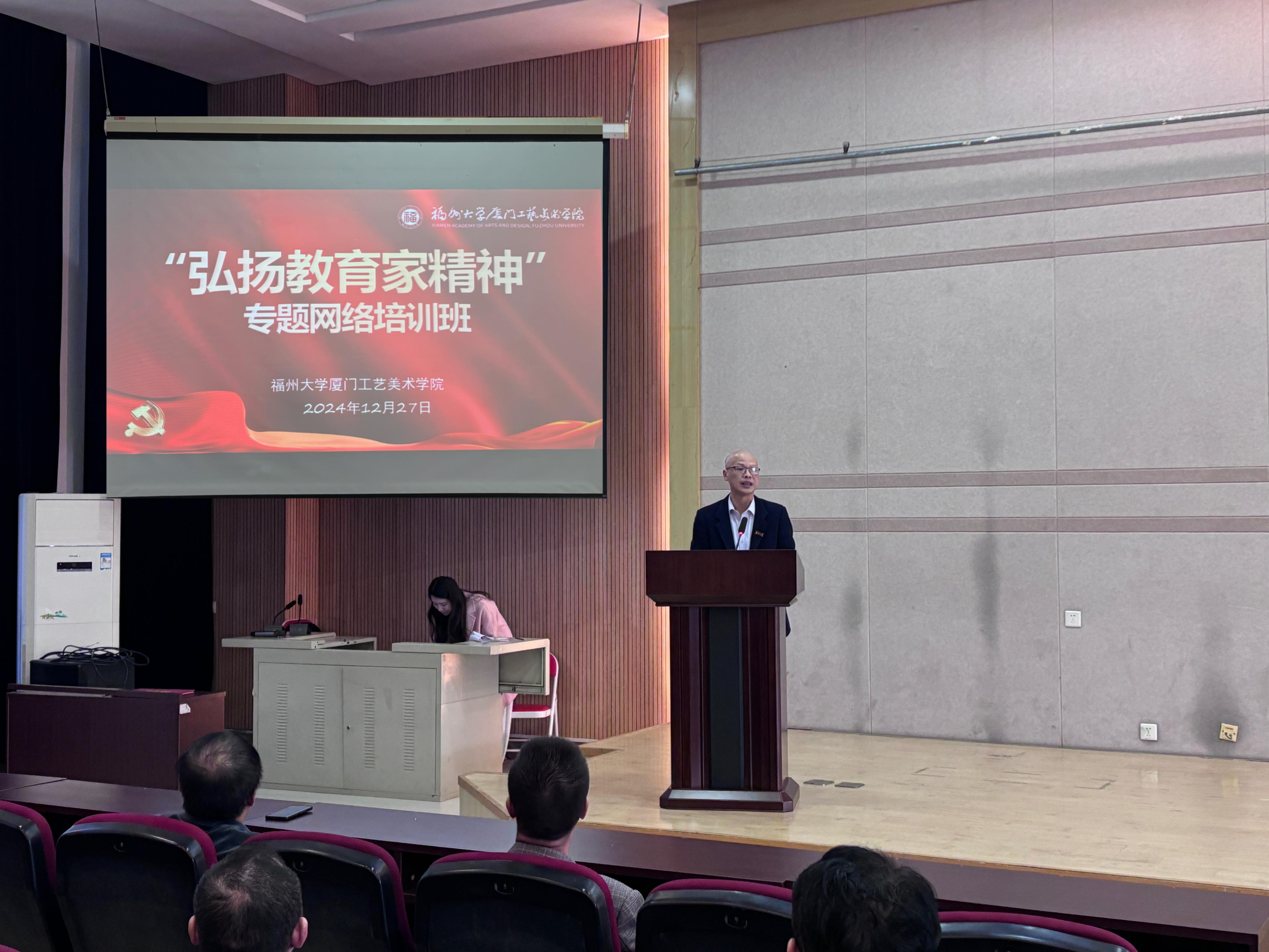 为深入贯彻习近平总书记关于教育的重要论述,落实关于大力弘扬教育家精神的重要指示,强化教师思想政治与师德师风建设,打造高素质教师队伍,12月27日上午,学院在311报告厅组织全体教职员工参加由国家教育行政学院举办的“弘扬教育家精神”直播学习会,学院党委副书记李响同志主持学习会。此次学习会聚焦“弘扬教育家精神,争做新时代‘大先生’”这一主题,由专家深入解读教育家精神,引导教师们深刻理解教育家精神内涵,鼓励教师们将教育家精神融入教学科研实践。通过此次培训,学院广大教师在提升自身素养、践行教育使命方面得到了有力的指导。有效激励全院教职工积极践行教育家精神,为教育事业发展贡献力量。