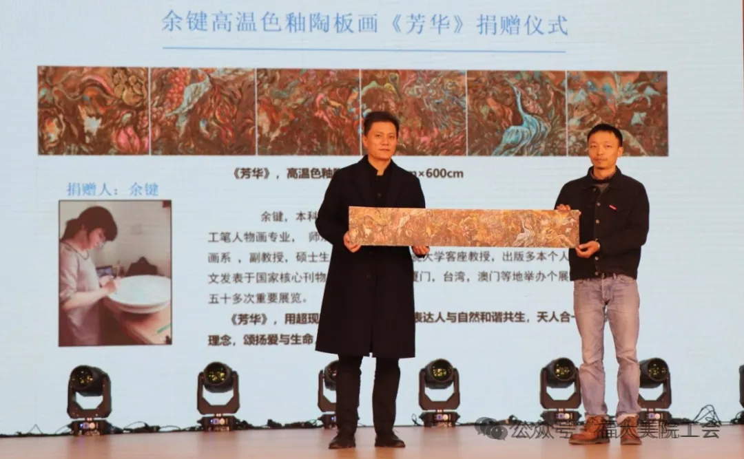 余键老师为学院捐赠高温色釉陶板画作品《芳华》