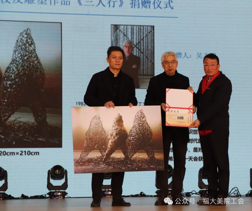 吴志鹏校友为母校捐赠作品《三人行》