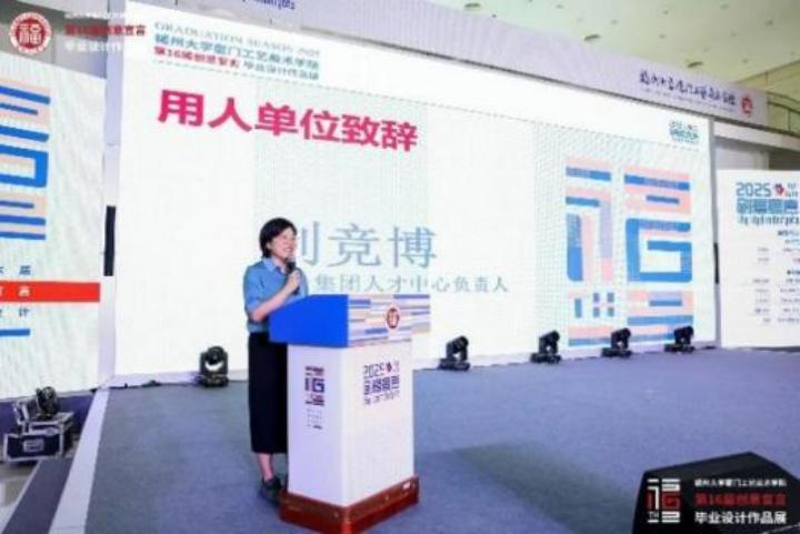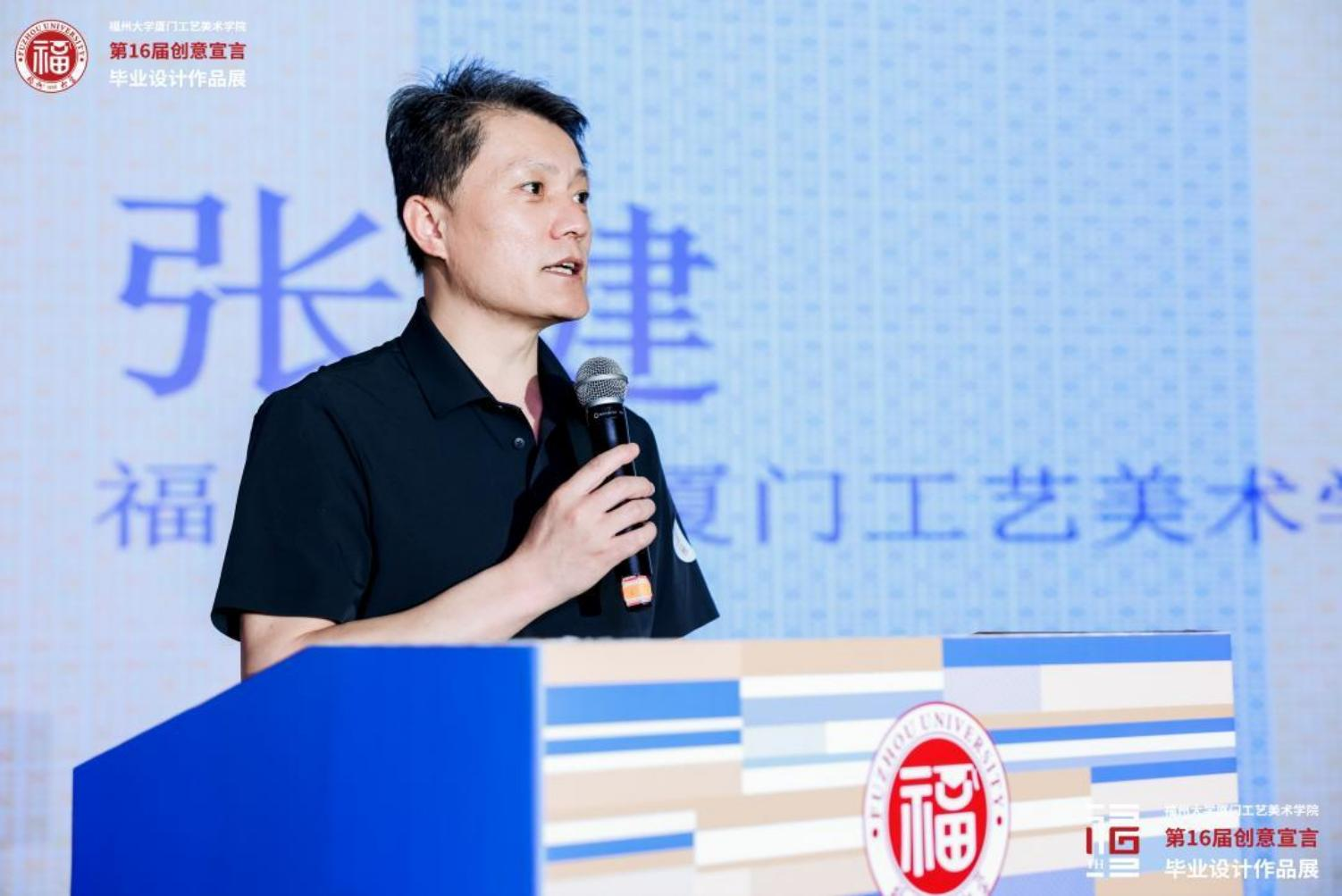 张健副院长代表主办方、刘竞博代表用人单位先后在开幕式上致辞。张健副院长在致辞中表示,“创意宣言 ”毕业展不仅是学院每年最重要的学 术展示活动,更是面向社会展现办学成果的窗口与专业教育质量的检验平台。本 届展览作品风格多样、主题丰富,充分体现了“艺科融合 ”背景下的探索与实践, 展现出学生扎实的专业能力与独特的艺术创造力。作为“厦门市民文化汇 ”系列 活动之一,本次展览为城市文化注入了新活力。学院通过与厦门美术馆的合作,为学生搭建展示平台,让创意走出校园、走进社会,让艺术与设计之美深入人心。