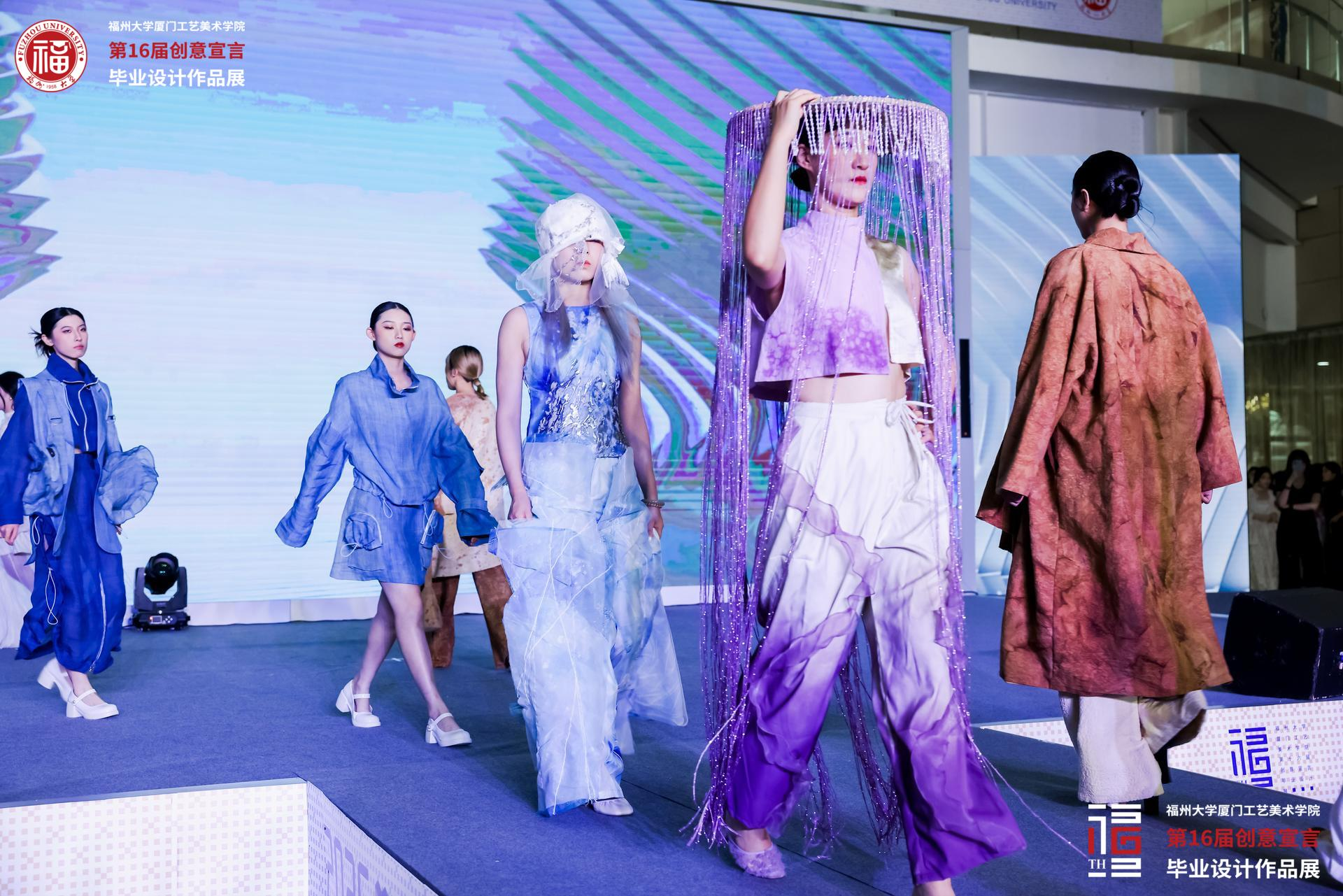本次开幕式还特别呈现了以“创意宣言 ·融 ”为主题的毕业时装秀,集中呈 现 2025 届本科生创新设计成果。时装秀融合非遗工艺与现代设计语言,打破学 科边界,构建具有文化深度与技术高度的作品体系。