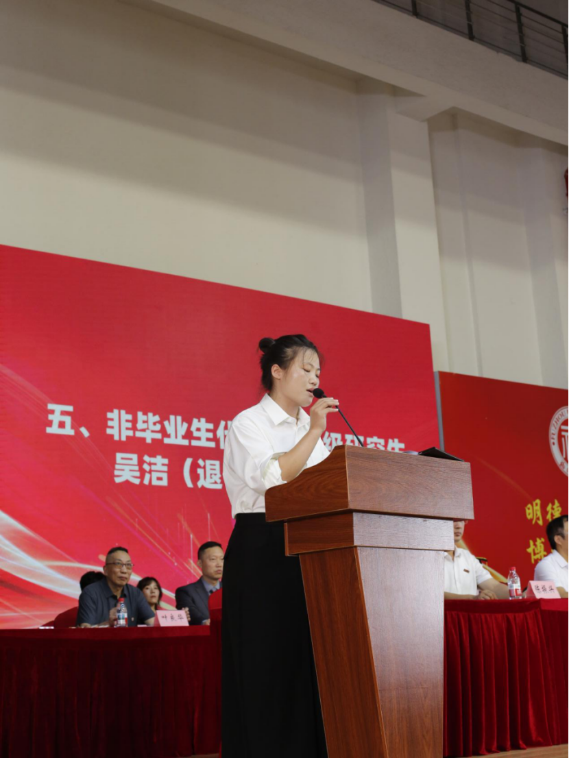 随后,非毕业生代表2024级研究生吴洁作为退伍军人,回顾了身在军营和在校求学的经历,呼吁同学们勇担时代责任。