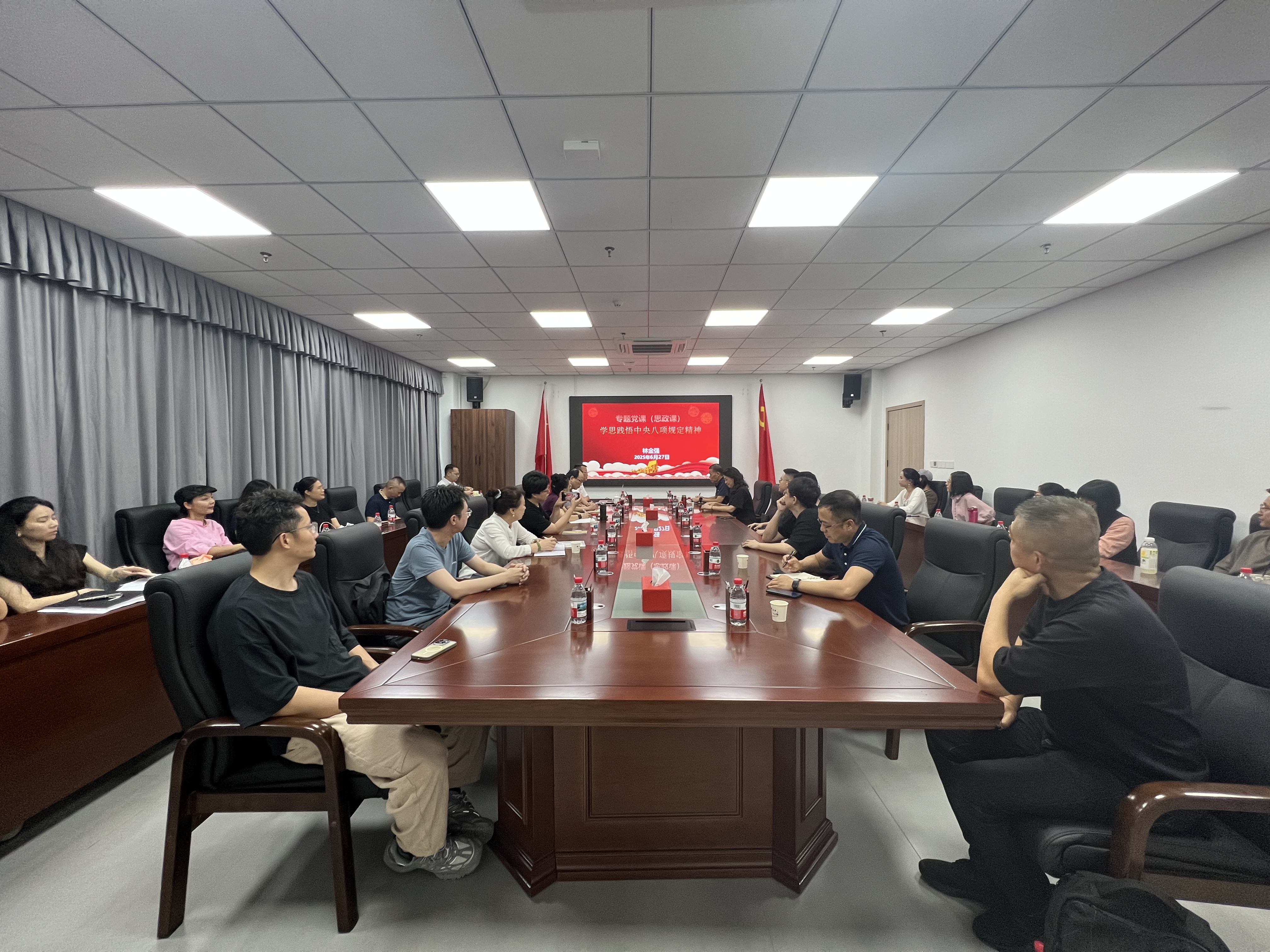 为持续巩固拓展作风建设成效,6月27日下午,学院在图展中心419召开专题学习会,学院党委书记林金强紧密围绕深入贯彻中央八项规定精神的核心要求,从“学、思、践、悟”四个维度进行了系统阐述和深入学习。学院纪委书记王海龙、环艺系、工业系、机关一部门全体老师共30余人参加。林金强书记在授课中指出,中央八项规定是全面从严治党的切入口和动员令,其精神实质必须常学常新、入脑入心。他强调: