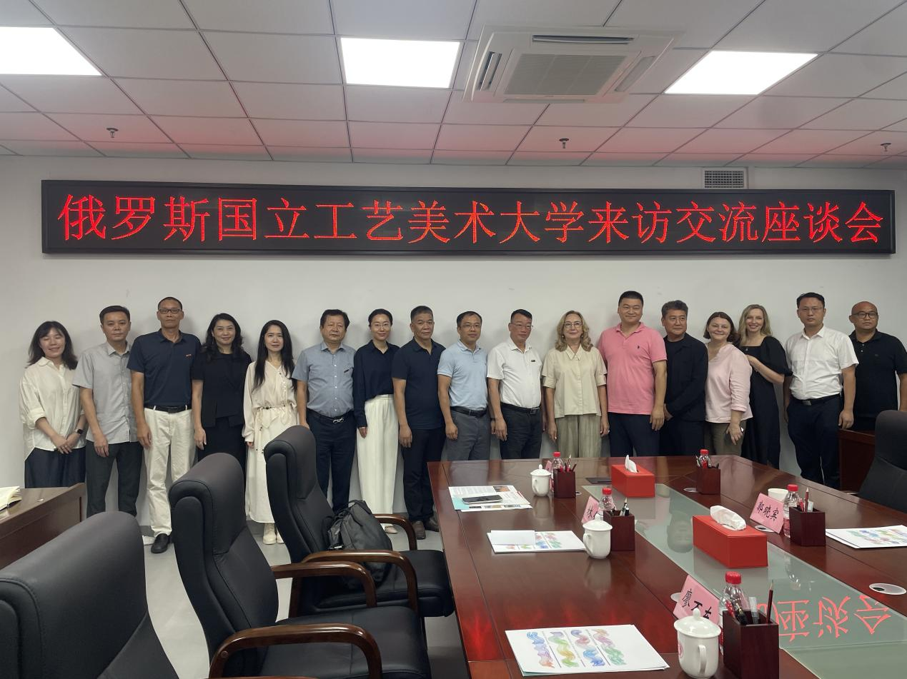 9月19日上午,为深化合作办学、推进两校交流,俄罗斯国立工艺美术大学纪念性装饰和装饰艺术学院院长苏洛瓦・埃琳娜・米哈伊洛夫娜、金属艺术设计系主任多托夫・耶尔加利・努尔克舍维奇、装饰和应用艺术办公室教育专家加里尼娜・韦特兰娜・谢尔盖耶夫纳、巴伊科娃・纳塔利娅・谢尔盖耶夫纳,以及丝绸之路创新院院长郭晓宾一行到访肉漫