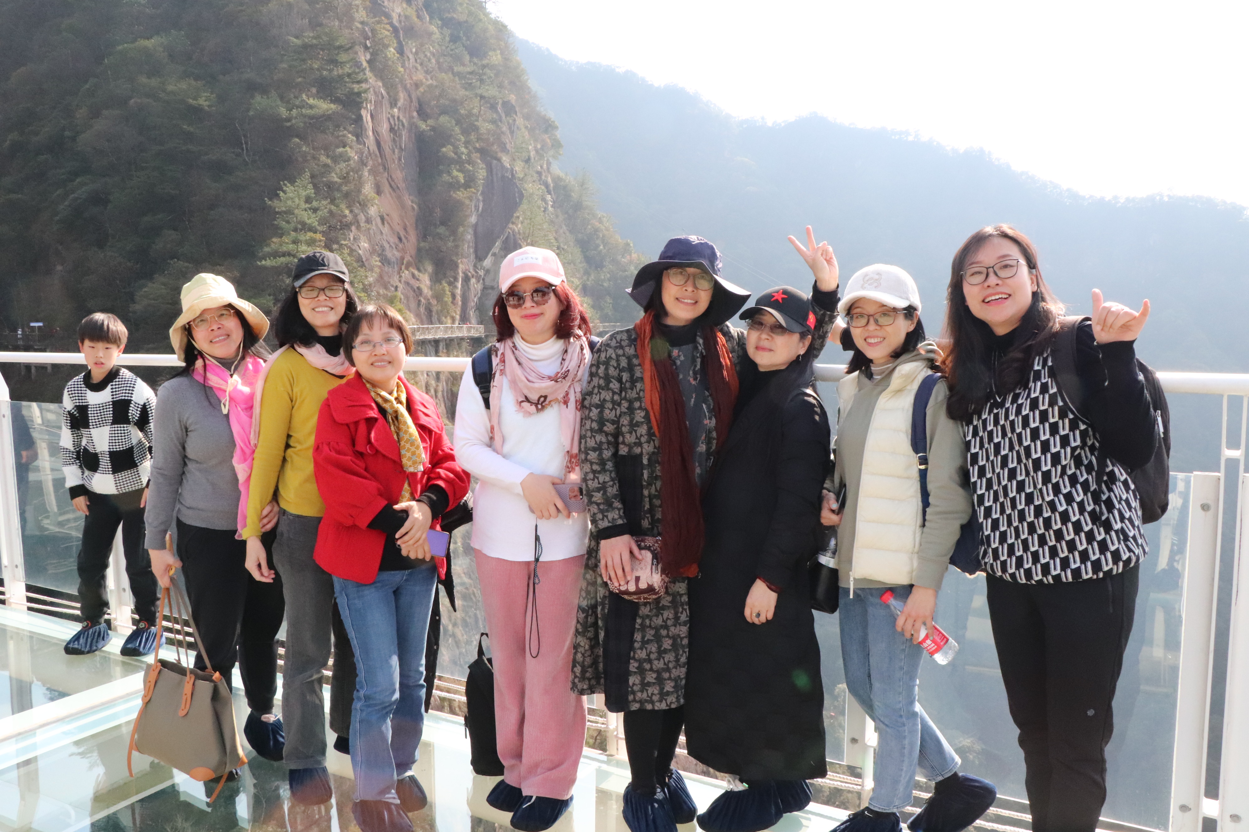 一路沿溪而下,溪水潺潺,大家打卡了情缘谷、天空之心、悬崖栈道……站在玻璃桥上,抬头眺望远处的无限风光,透过玻璃俯瞰脚下,层峦叠嶂,万丈深渊。只见大家表情不一,有的轻松自如,有的成为“扶墙一族”,体验步步惊心的刺激感。当看到岱仙瀑布飞流直下,不羁的瀑水如烈马脱缰,不禁感叹雄伟壮观,气势非凡。