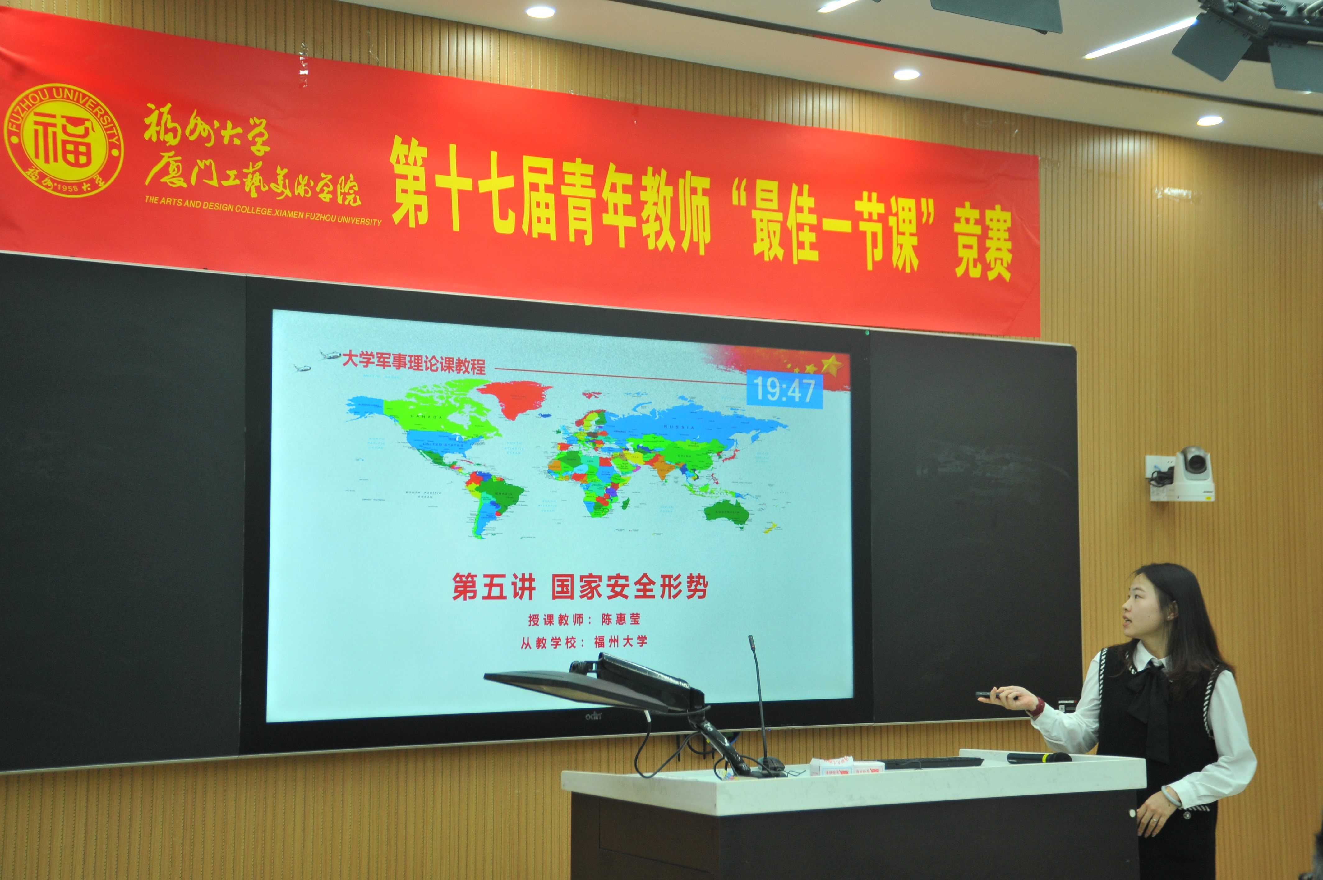 第十七届青年教师”最佳一节课”教学竞赛活动,在2号教学楼208智慧教室顺利举行。 本次竞赛邀请了全国模范教师厦门理工学院教务处副处长王刚教授、学院英浩教授、黄志雄教授、万吉欣教授、彭汉宗博士担任评委,共有8位青年教师参加此次竞赛。