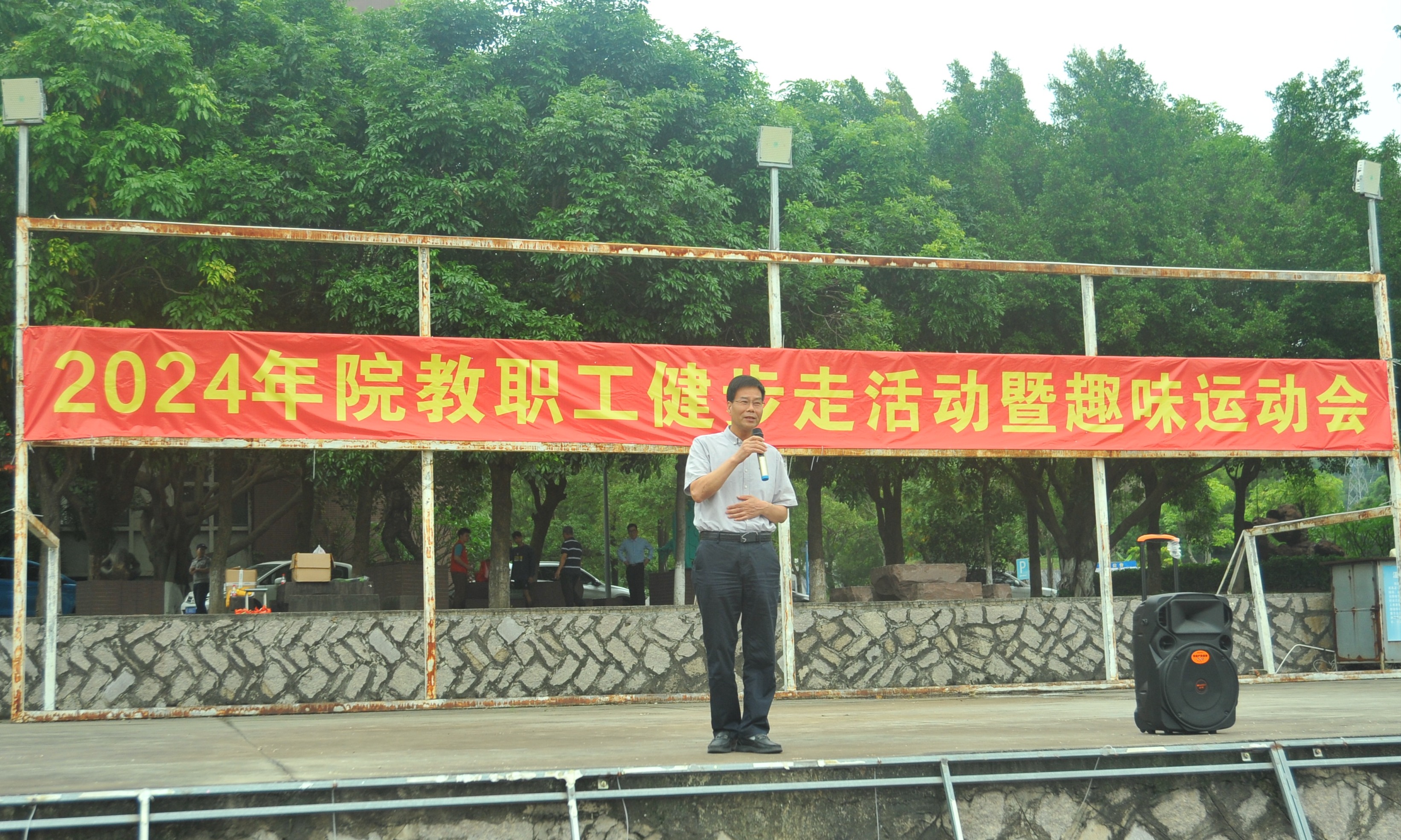2024年5月30日下午,由学院工会主办的学院教职工校园健步走活动暨趣味运动会在学院操场成功举办。学院党委李礼建书记、林金强副书记、林旭副院长、工会黄志雄主席出席并参与了本次活动,李礼建书记为活动致辞。
