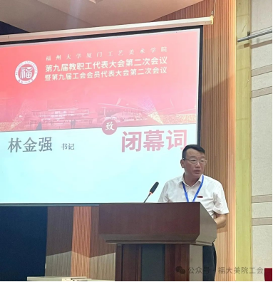 张健副院长号召全体代表们振奋精神,鼓足干劲,以“时不我待”的紧迫感和“舍我其谁”的使命感,以更高的站位、更实的举措、更强的合力,携手并进、奋勇争先,共同谱写学院更加辉煌的新篇章,为建设“东南明珠艺术而努力奋斗!