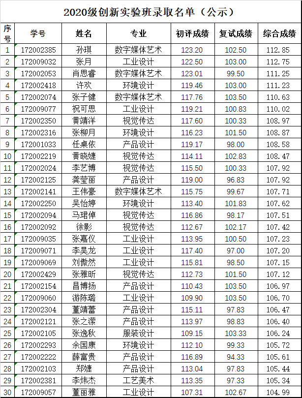 10月17日9:00-18:00,进入复试环节的45位同学聚集在3号教学楼403创新工坊共同参与长达9小时紧张而高效的项目实战考查。经历团队设计演练、分组汇报答辩两个环节,最终完成复试考核。按综合成绩排序,拟遴选产生30位新学员(综合成绩= 初评成绩×50%+复试成绩×50%)。现将名单公示如下: