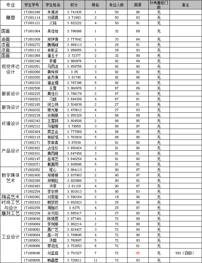 2022年推荐优秀应届本科毕业生免试攻读研究生考核资格名单的公示