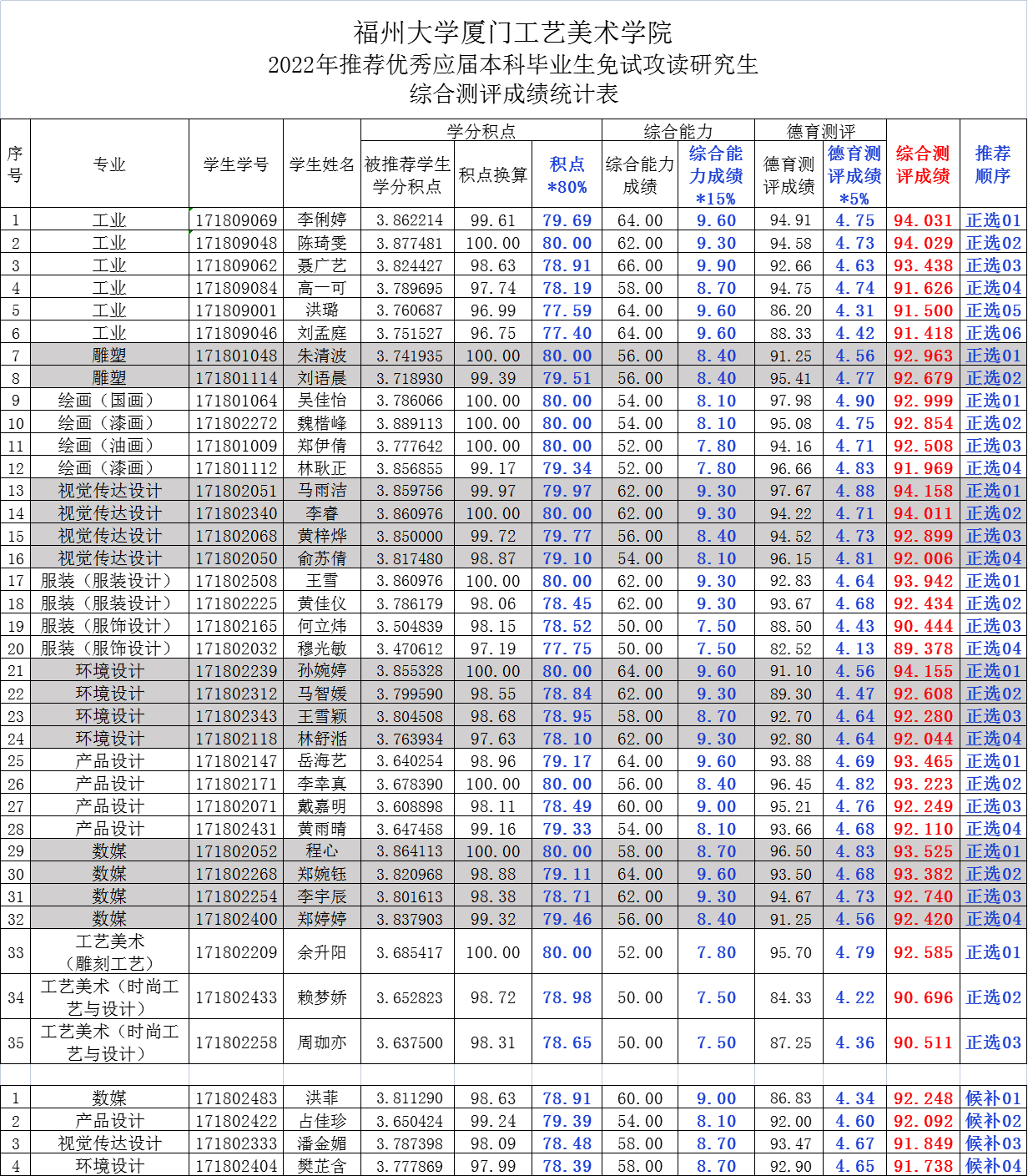 关于获得肉漫 2022年推荐优秀应届本科毕业生 免试攻读研究生初选资格名单的公示