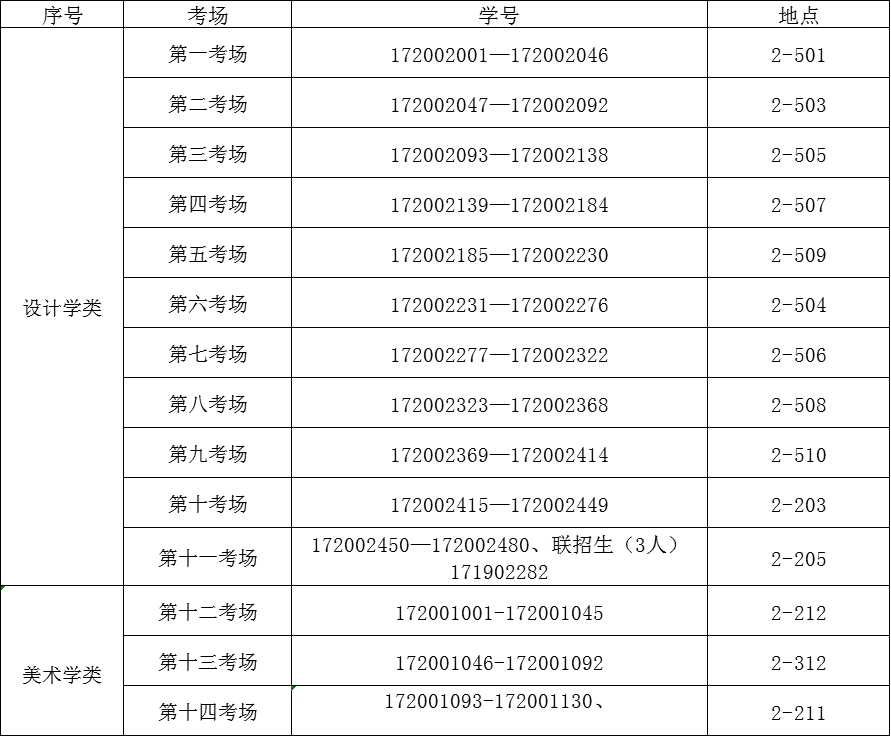 三、考场安排: