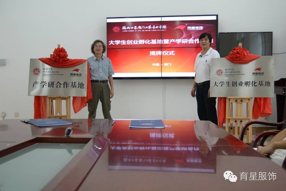 与育星服饰集团联合建立的大学生创业孵化基地、产学研合作基地揭牌仪式在2#教学楼107会议室隆重举行。该项目是全国首个根据6月30日国家标准委批准发布的《中小学生校服》国家标准,并率先以“优质、合体、美观、舒适”为导向的校服产学研基地,引领中国校服改革创新。
