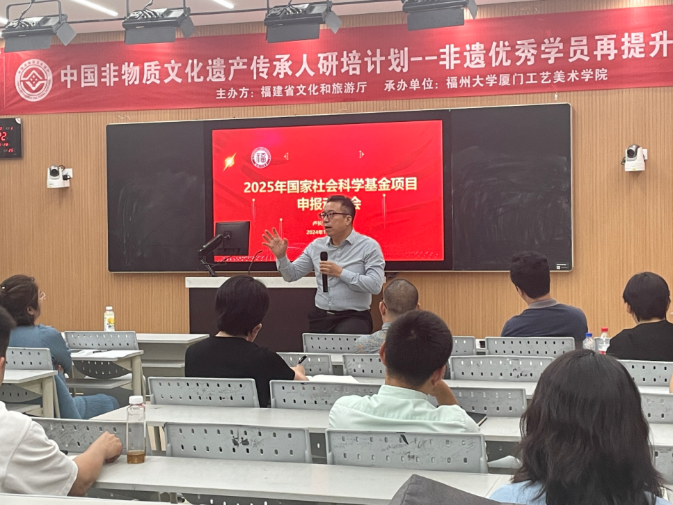 卢长宝处长建议教师们可以利用艺术学科的特色,与其他学科进行交叉研究,如艺术与思政课结合研究、艺术与教育结合研究、艺术与通俗读物结合研究及博士论文可以如何转化为后期资助项目等,从而拓宽科研项目的申报范围。其次,卢处长还指出教师的研究方向应多向社会大趋势靠拢,如习近平新时代中国特色社会主义思想的研究及应用、两岸融合中艺术产业的融合、乡村振兴、遗产保护及创新型产业化的应用、中国形象输出研究等等。他还鼓励教师们应多去本部学习借鉴已立项的项目申报书,以营销者的心理写出迎合评审专家要求的项目申报书。最后,他特别强调教师在撰写项目申报书的时候一定要注重文字的表达,字斟句酌,细致打磨申报书的每一个部分,同时,教师们要加强科研团队建设,形成良好的学术研究氛围。