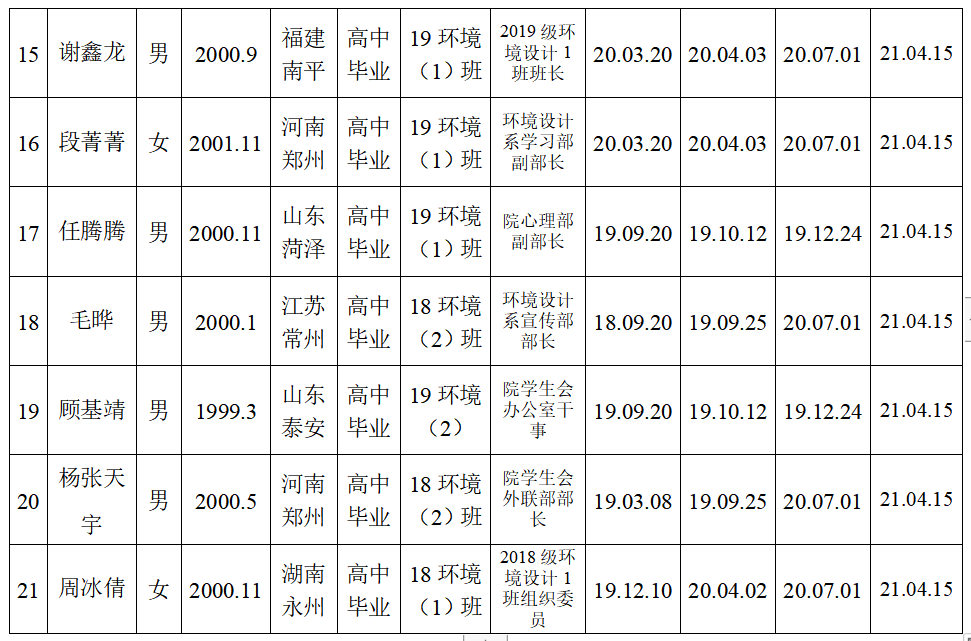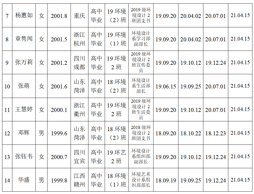 为了加强对发展党员工作的民主监督,确保发展新党员的质量,现将入党积极分子李怡玫等21位同志的有关情况进行公示(详见《拟批准的发展对象基本情况表》),公示期4月9日至4月14日止。有异议者,可向学院党委反映。