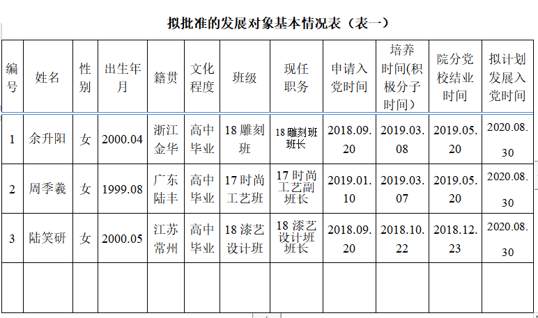 为了加强对发展党员工作的民主监督,确保发展新党员的质量,现将入党积极分子余升阳等3位同志的有关情况进行公示(详见《拟批准的发展对象基本情况表》),公示期9月10日至9月14日止。有异议者,可向学院党委反映。