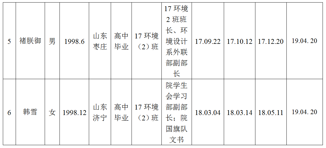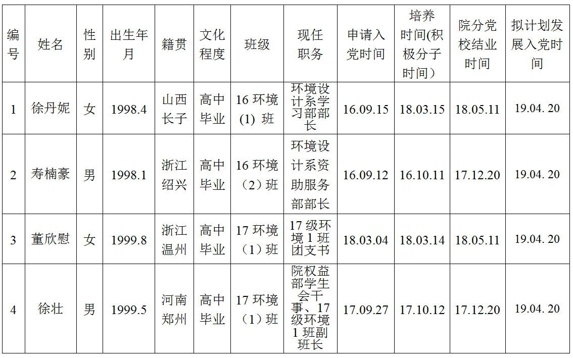 关于拟批准徐丹妮等6位同志为党的发展对象的公示书