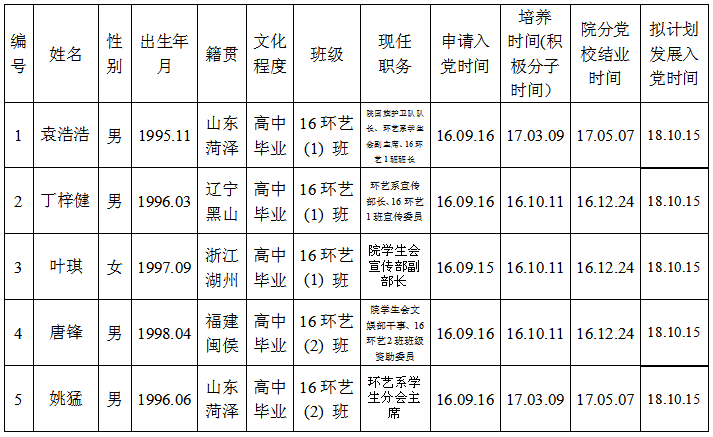 关于拟批准袁浩浩等8位同志为党的发展对象的公示书