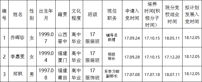 关于拟批准乔晖珍等三位同志为党的发展对象的公示书