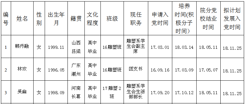关于拟批准韩丹融等3位同志为党的发展对象的公示书