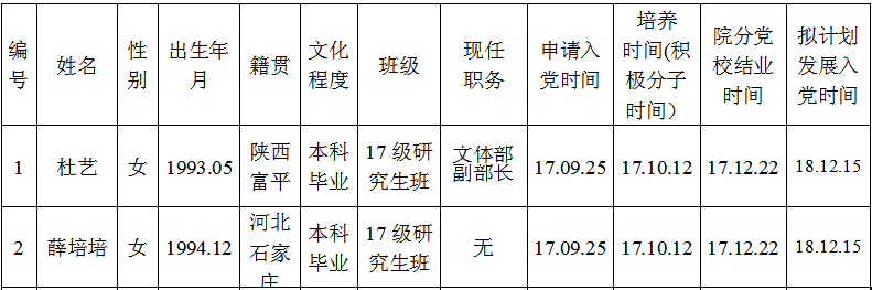 关于拟批准杜艺等2位同志为党的发展对象的公示书