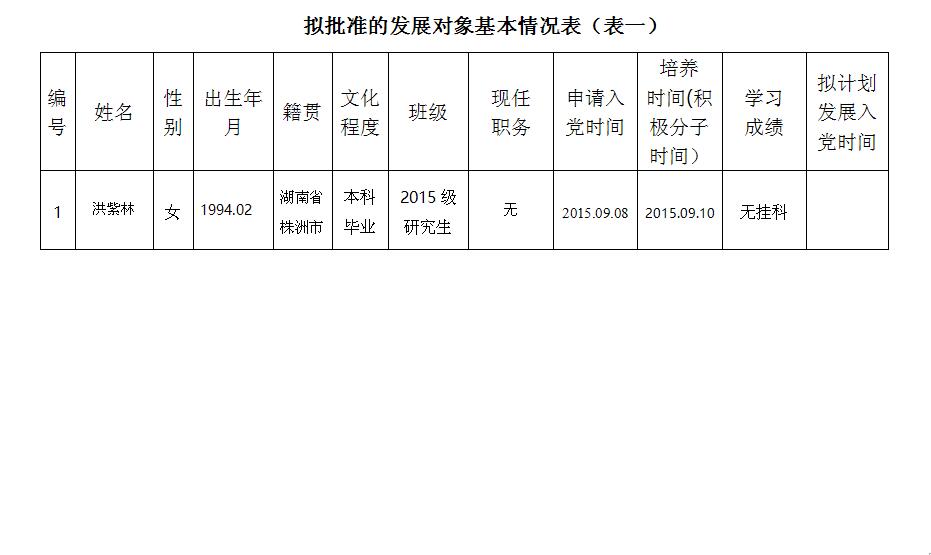关于拟批准洪紫林同志为党的发展对象的公示书