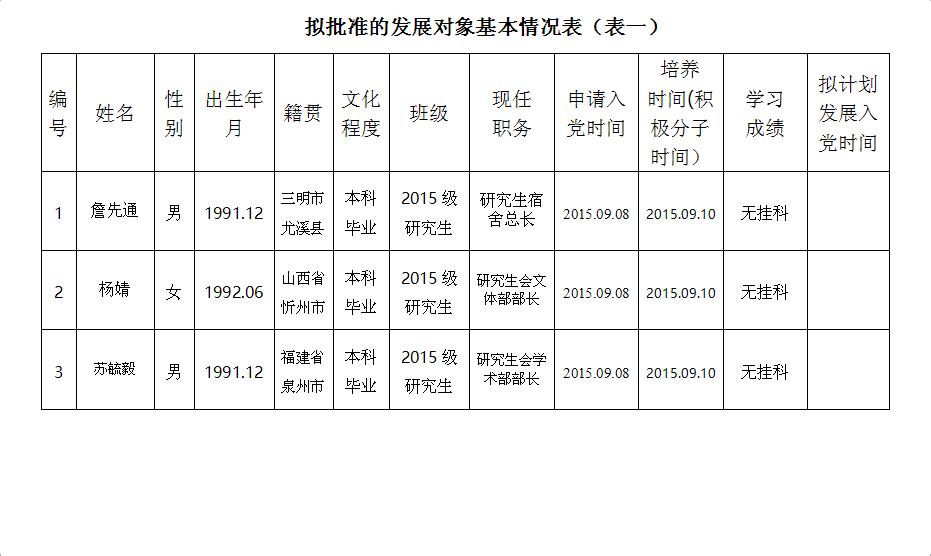 关于拟批准詹先通等3位同志为党的发展对象的公示书