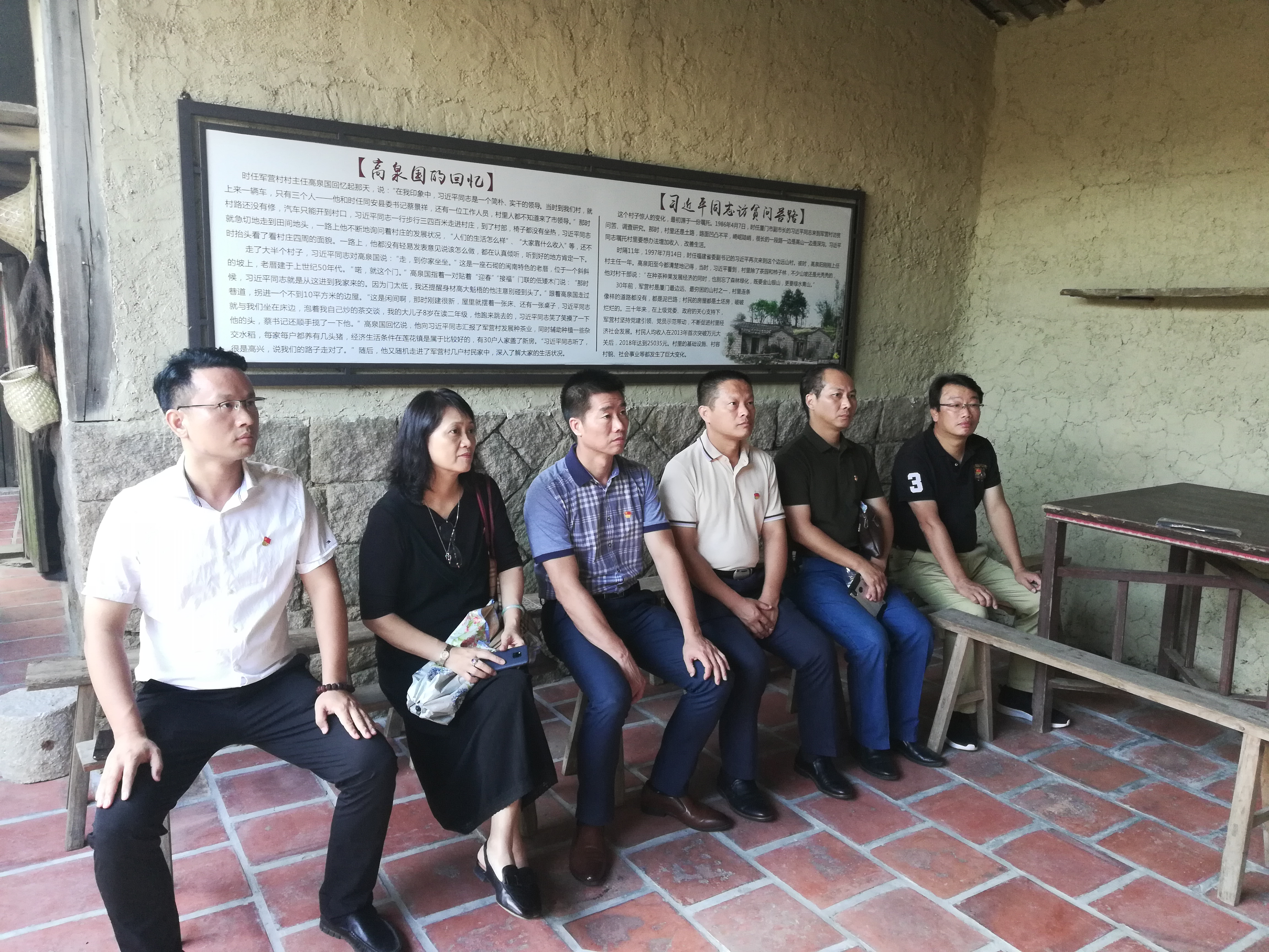 根据学院“不忘初心、牢记使命”主题教育领导小组的部署和学院主题教育工作方案安排,2019年9月24日下午,学院党委班子成员、处级领导干部等一行6人前往习近平总书记曾经挂钩联系的军营村、白交祠村现场学习。参加现场学习会的同志在中共同安区委党校校长叶文彬同志的带领下,重走习总书记1986年、1997年两次到军营村、白交祠村调研指导工作时走过的路,参观村容村貌,走进习总书记来访过的村民家中,走访习总书记关心的村老干部,聆听村干部深情回忆习总书记当时深入村民家中,访贫问苦,体察民情,调查研究,出谋划策,精准扶贫等温暖往事和谆谆教导的情景。大家走入村委会、高山党校的现场教学点、教室、课堂和展览馆等,专心观看视频,认真聆听叶文彬校长的现场讲解,领会习总书记当时针对军营村、白交祠村实际提出的“山上戴帽,山下开发”、“扶贫先扶智”的远见卓识和思想内涵。